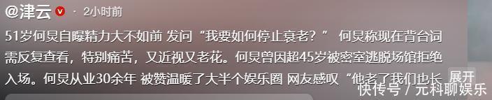 令人意外的是,公众对何炅衰老的反应出奇地包容。 大多数网友表示理解与支持:“专业能力和情商比外貌重要多了”、“51岁能保持这样已经非常好了”。何炅的衰老引发共鸣,是因为他映照出观众自身的成长。 对80、90后来说,何炅是青春记忆的符号。 他的变化让一代人意识到自己也不再年轻。